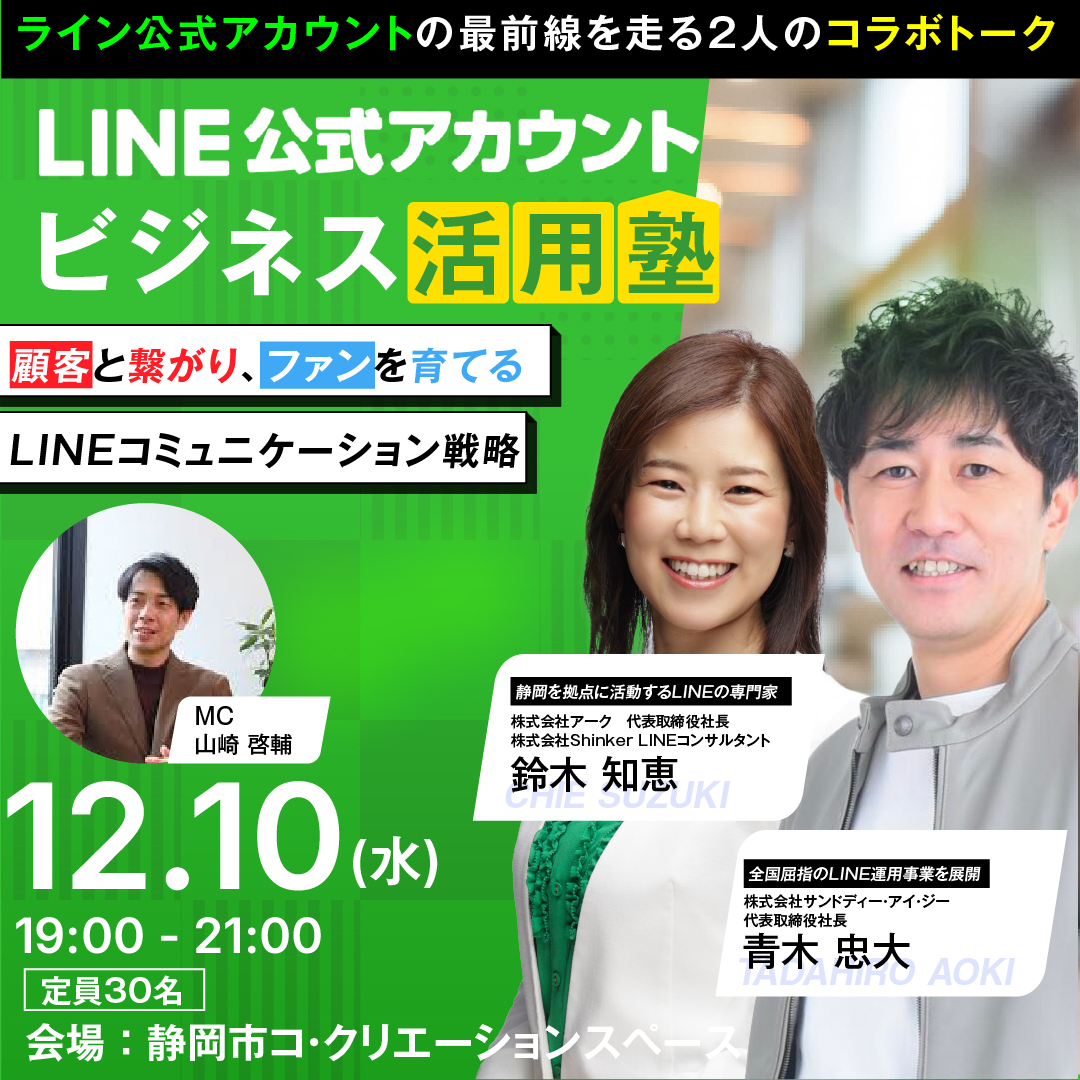 【12/10(水)夜】LINEビジネス活用塾 -顧客と繋がり、ファンを育てる コミュニケーション戦略- in コクリ静岡市