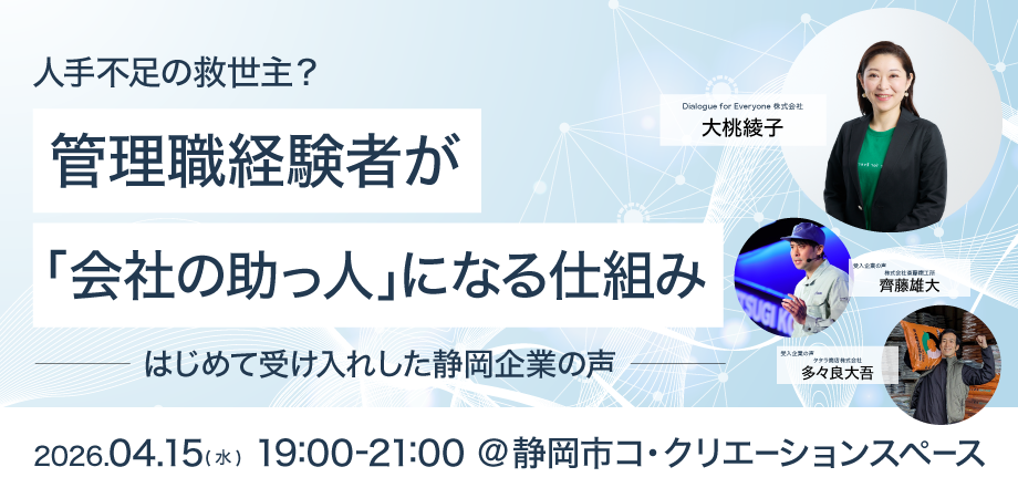 【4/15(水)夜】人手不足の救世主?管理職経験者が「会社の助っ人」になる仕組み